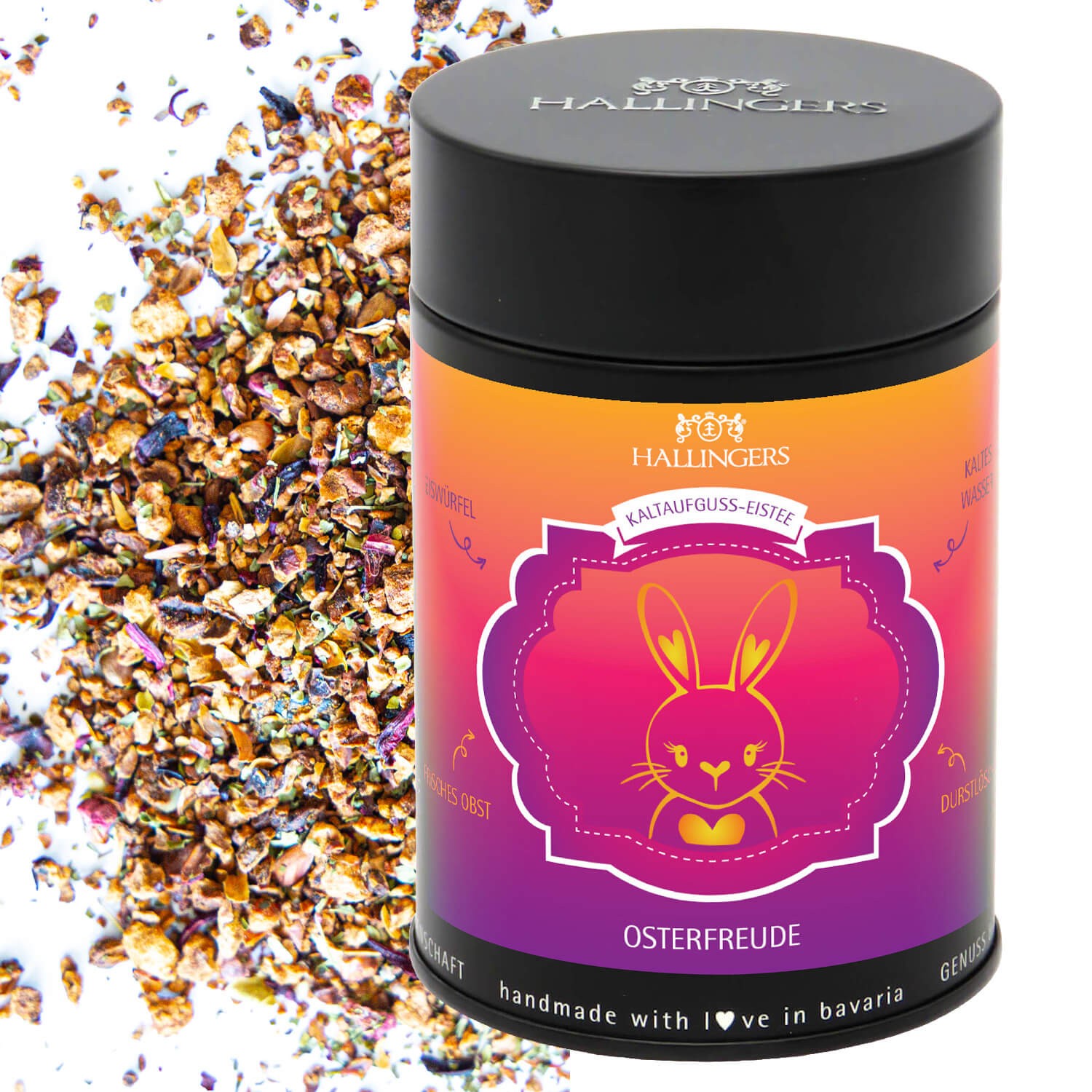Tee Geschenk Ostern - Loser Cold Brew Früchtetee Eistee zu Ostern, kalt oder warm aufgießbar, edle Geschenkdose "Frohe Ostern", Geschenkidee für Fraue