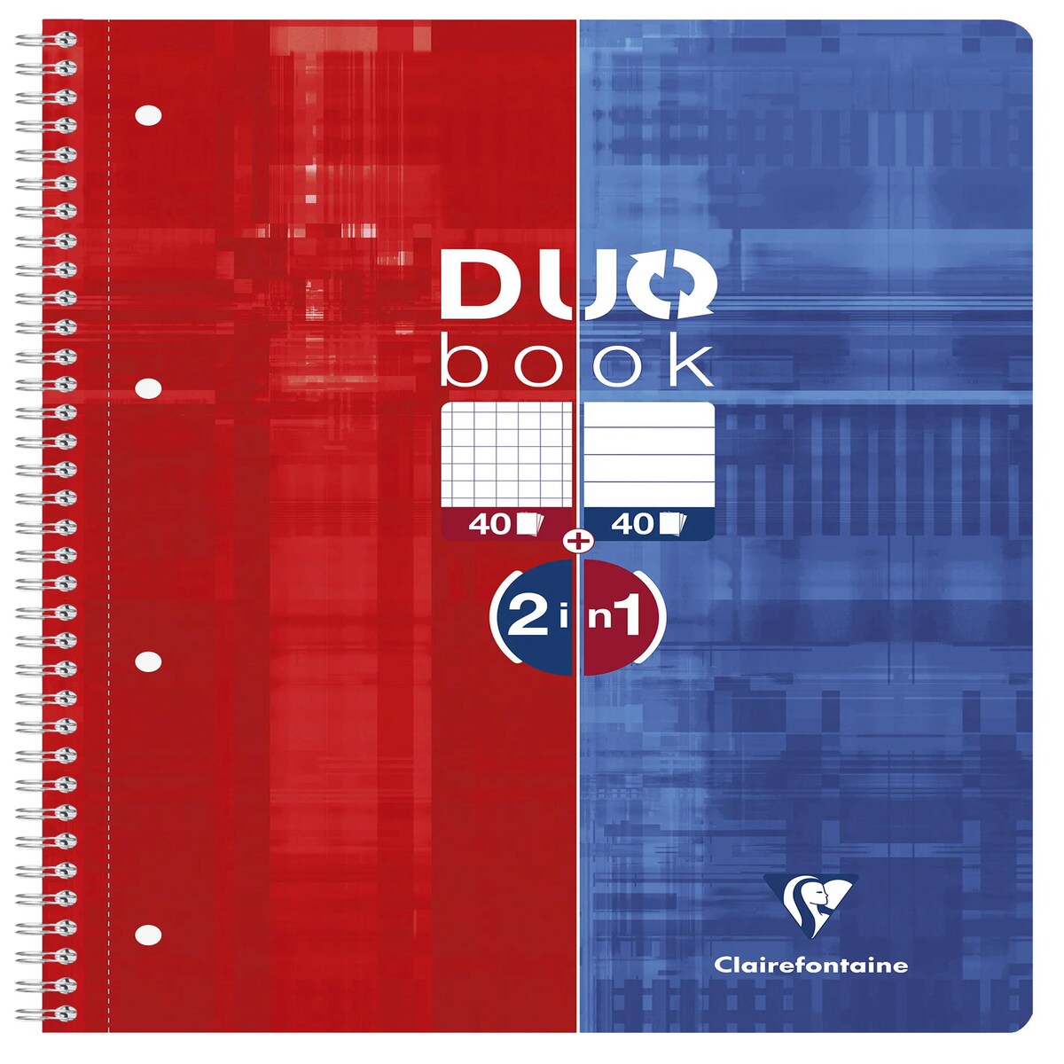 Clairefontaine 5x DUO book Collegeblock A4+, 40 Blatt kariert + 40 Blatt liniert - Blau/rot 82526C