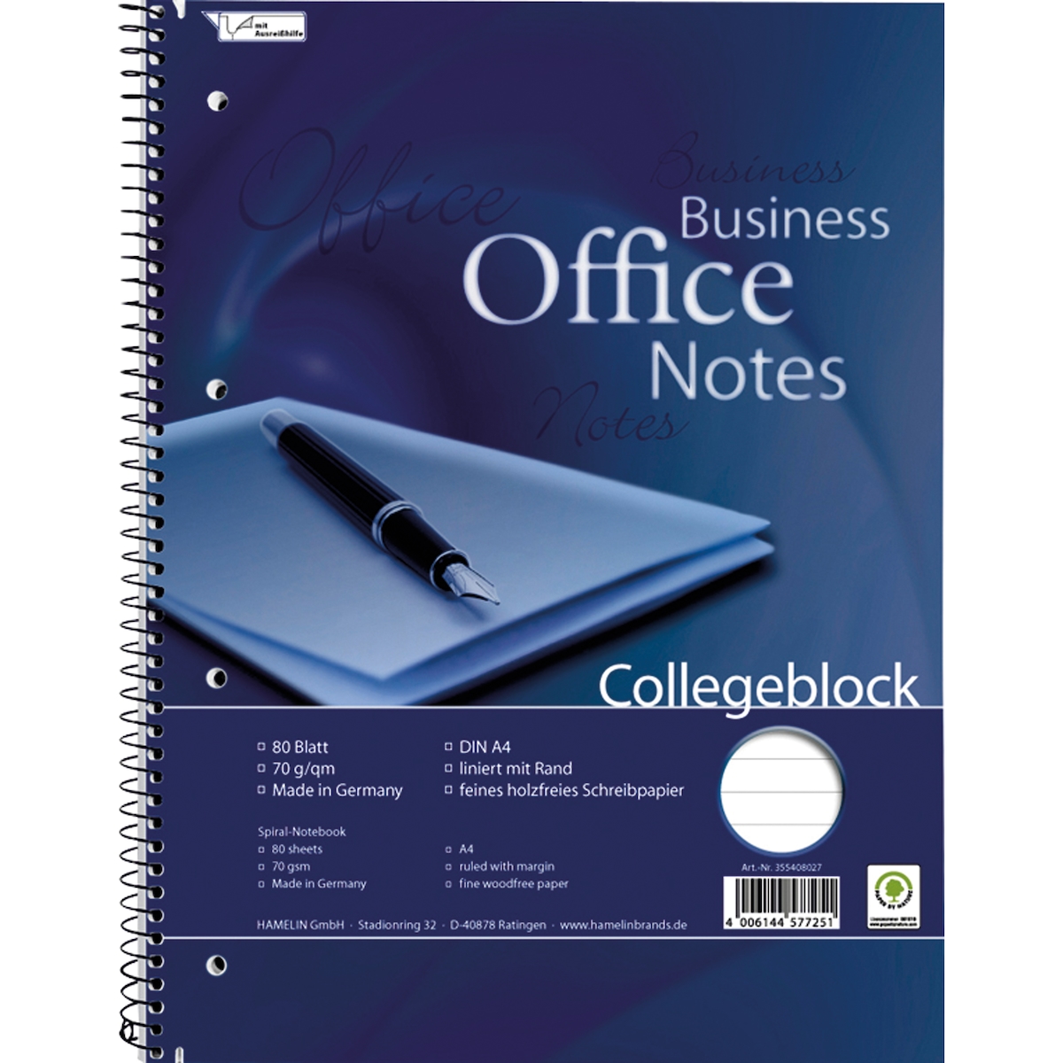 Collegeblock - liniert, 80 Blatt, 70g