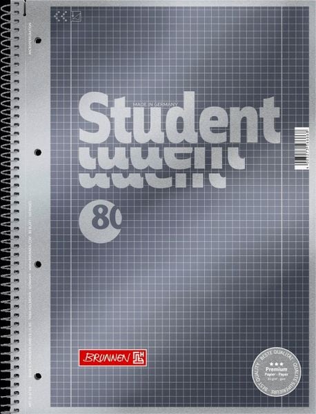 Collegeblock Brunnen Student Premium 67145 - A4 210 x 297 mm grau Protokolllineatur 8