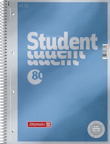 Collegeblock Brunnen Student Premium 67111 - A4 210 x 297 mm blau liniert Lineatur27
