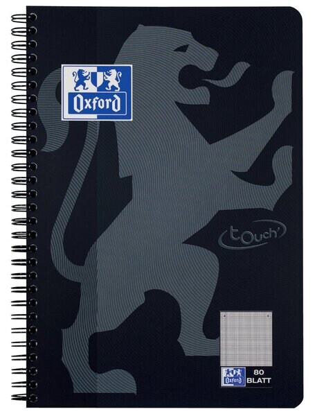 OXFORD International Collegeblock DIN A4+ Kariert Spiralbindung PP (Polyproplylen) Grau 160 Seiten 80 Blatt