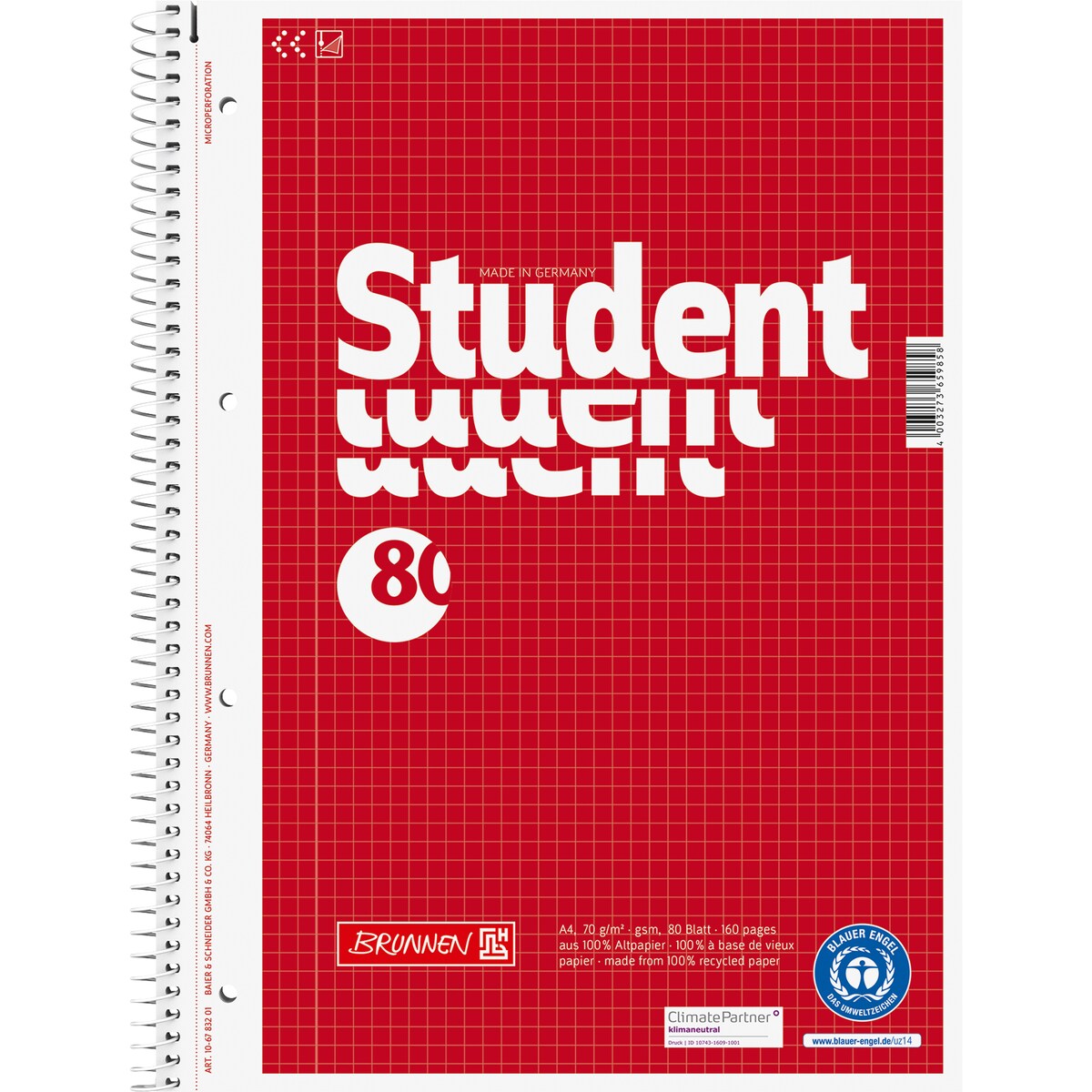 Collegeblock Brunnen Student Recycling 6787201 - A5 148 x 210 mm rot kariert Lineatur