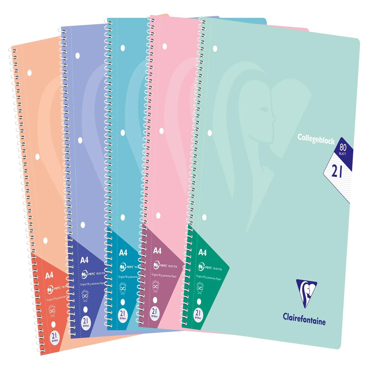 Clairefontaine 20x Collegeblock, 80 Blatt 90g liniert, Pastellfarben sortiert - 306256C