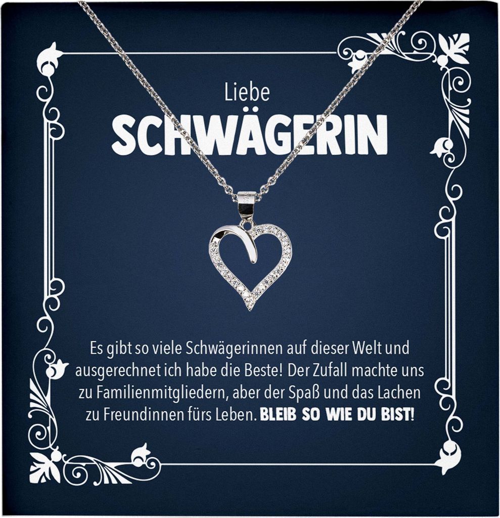 22Feels Liebe Schwägerin Geschenk Silber 925 Herz Halskette mit Karte Frauen Damen Collier Hochzeit Geburtstag Weihnachten Zirkonia-Steine (Damen ...