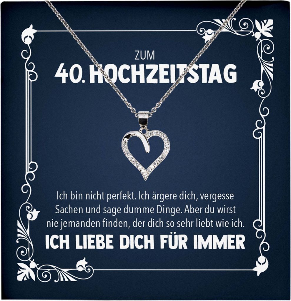 22Feels Ehefrau 40. Hochzeitstag Geschenk Ich Liebe Dich Frauen Herz Halskette Damen Collier mit 23 Zirkonia Steinen (Damen Silber 925/000 Schmuck)