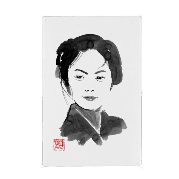 Holzbild "The painters daughter" artboxONE - Menschen,Schwarzweiß - Japon,Sumie,Geisha,Femme,Frau,Woman,Schwarzweiß,Blackandwhite