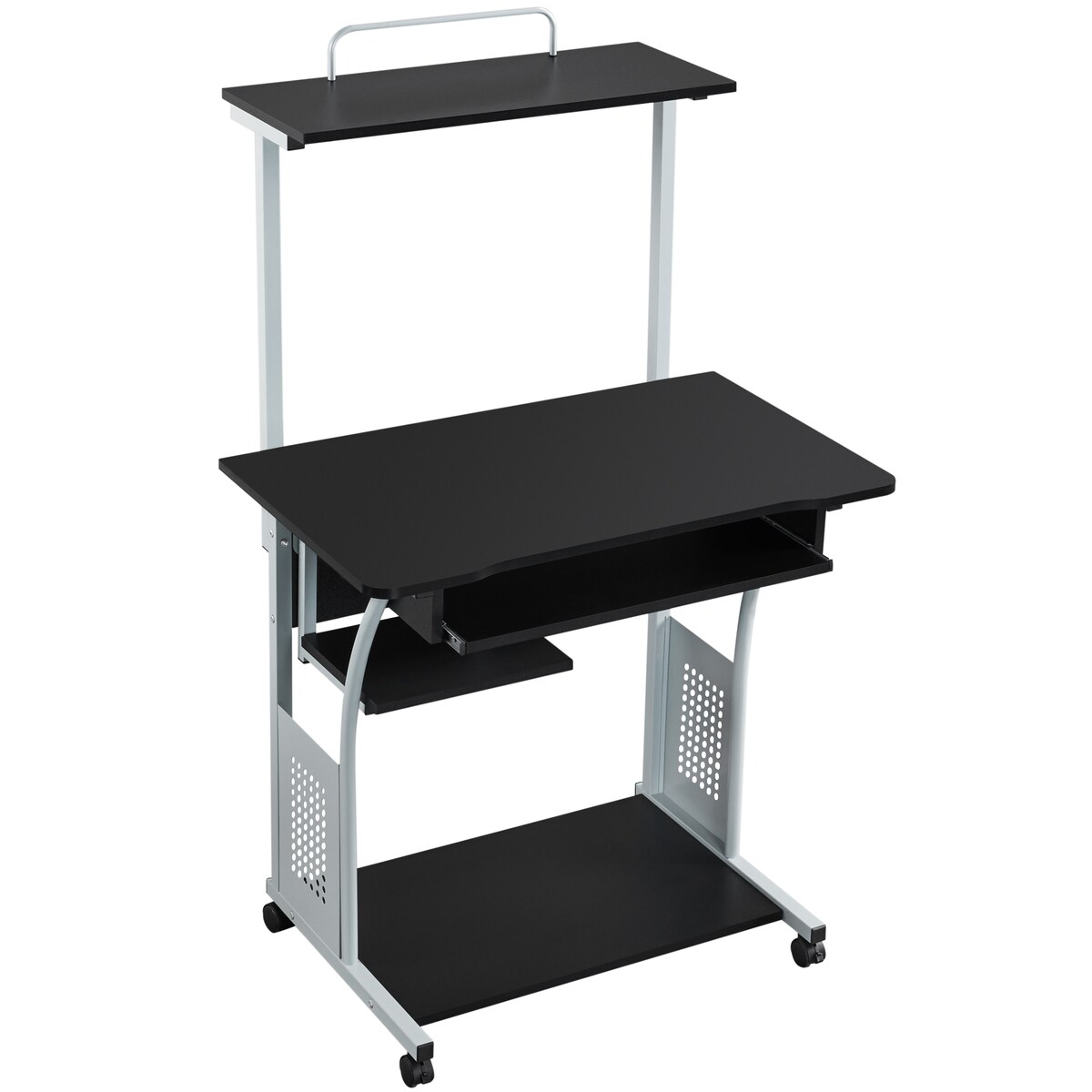 Yaheetech Schreibtisch mit Druckerregal Computertisch PC Tisch mit 4 Rollen 80 x 60.5 x 134 cm Schwarz