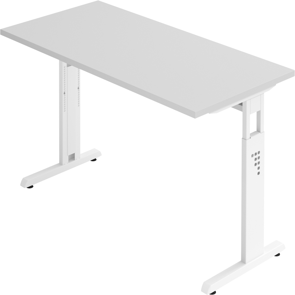 bümö höhenverstellbarer Schreibtisch O-Serie 160x80 cm in grau, Gestell in weiß - PC Tisch für's Büro manuell höhenverstellbar, Computertisch