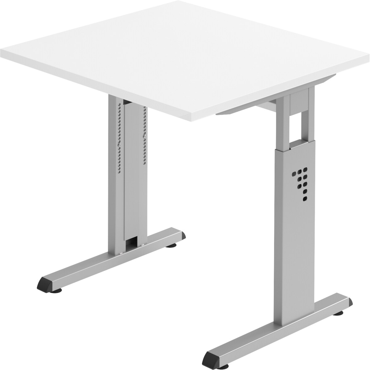 bümö höhenverstellbarer Schreibtisch O-Serie 80x80 cm in weiß, Gestell in Silber - PC Tisch klein für's Büro manuell höhenverstellbar, Computertisch