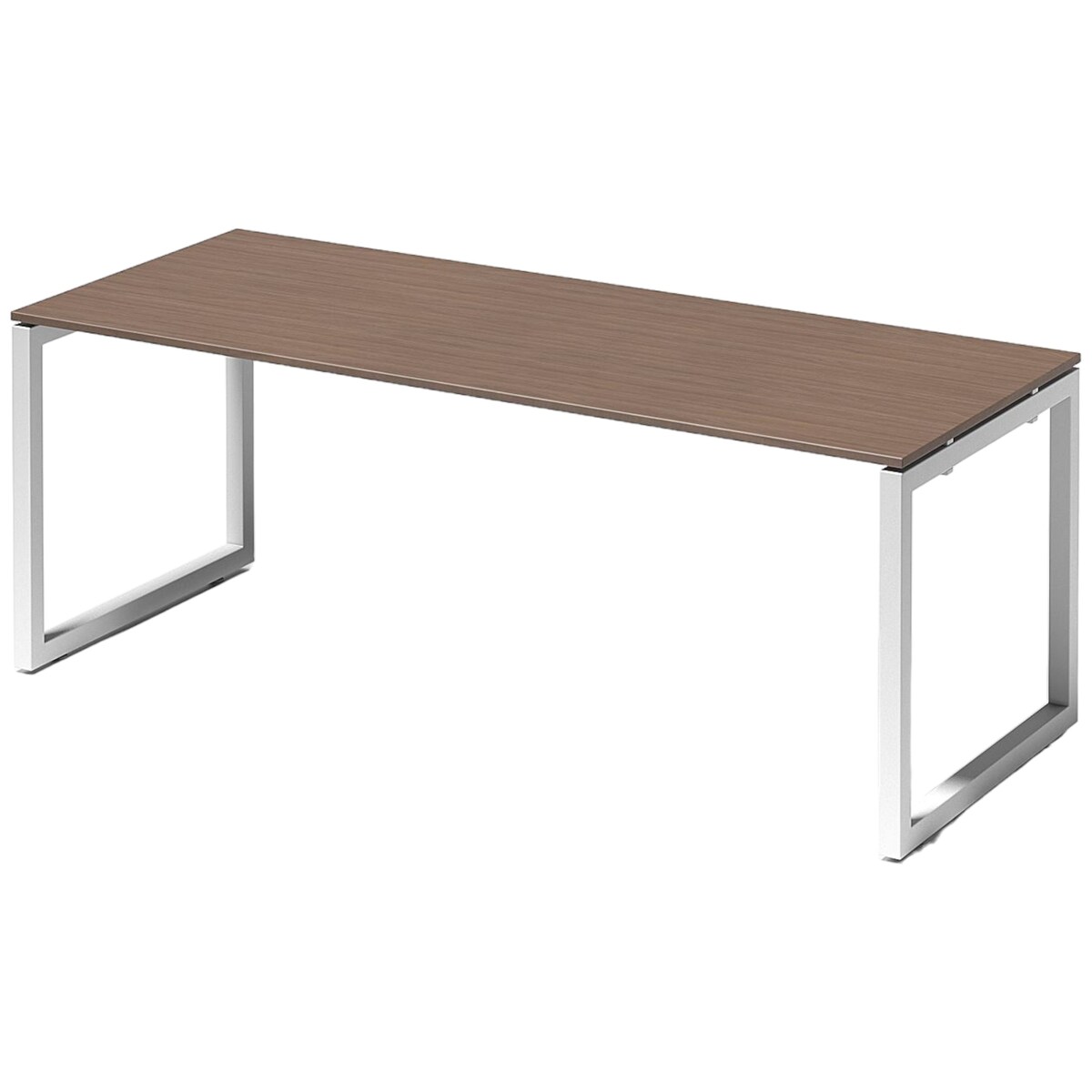 Bisley Cito Schreibtisch 200x80 cm, Tischplatte in Nussbaum, O-Gestell in Weiß - Bürotisch & Computertisch, PC Tisch für's Büro, Arbeitshöhe: 74 cm