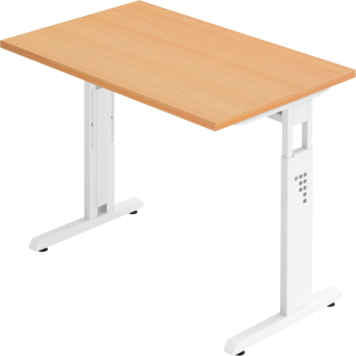 bümö höhenverstellbarer Schreibtisch O-Serie 120x80 cm in Buche, Gestell in weiß - PC Tisch klein für's Büro manuell höhenverstellbar, Computertisch