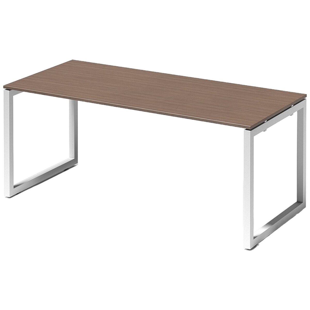 Bisley Cito Schreibtisch 180x80 cm, Tischplatte in Nussbaum, O-Gestell in Weiß - Bürotisch & Computertisch, PC Tisch für's Büro, Arbeitshöhe: 74 cm