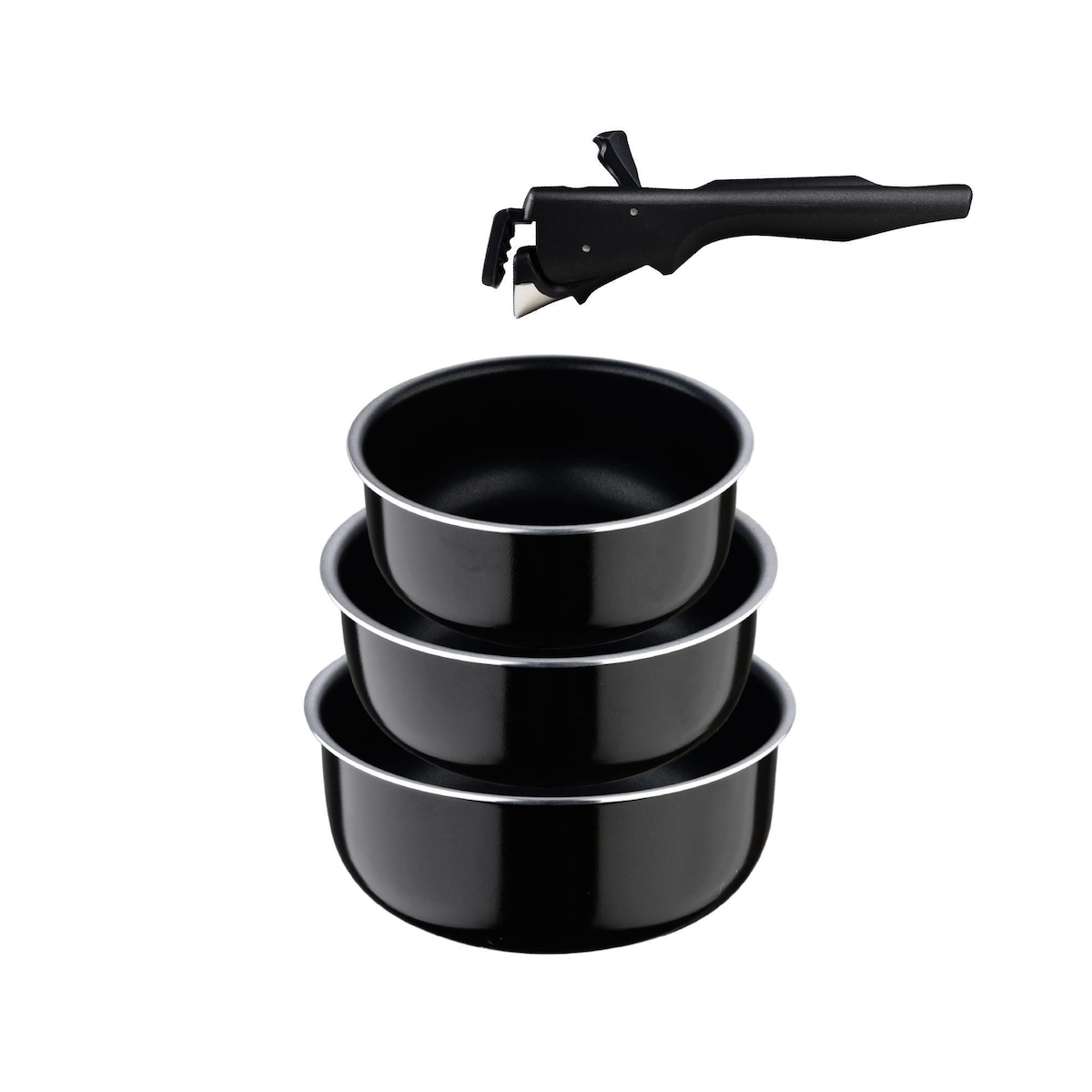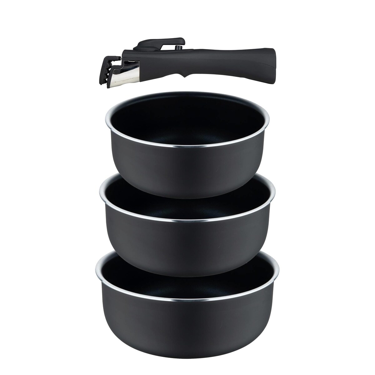BERGNER Click&Cook - 3er-Set Stielkasserollen Ø16Ø18Ø20cm, gepresstes Aluminium, schwarz, mit abnehmbarem Griff