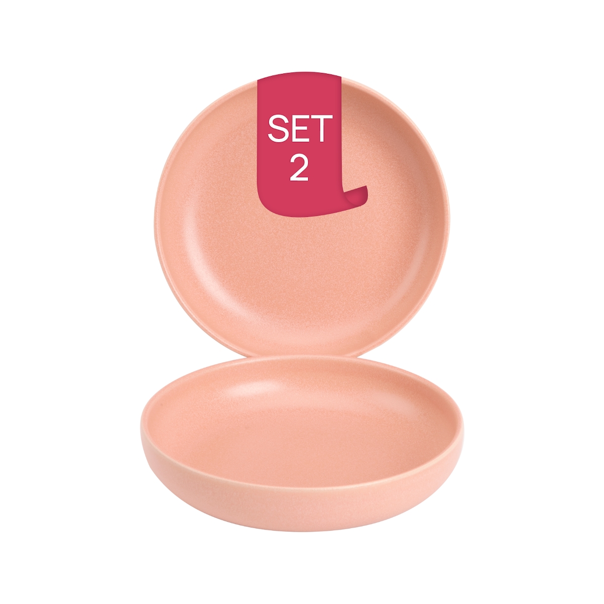 James Cooke Bliss tiefe Teller - 2er-Set, Steingut, Ø 22 cm, lachs rosa, Seidenglanz
