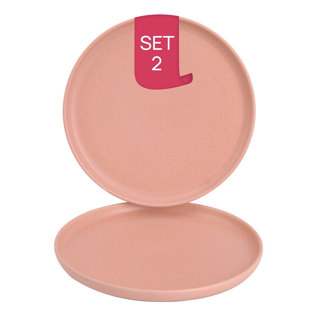James Cooke Bliss flache Teller - 2er-Set, Steingut, Ø 28 cm, Lachs Pastell Rosa, Seidenglanz
