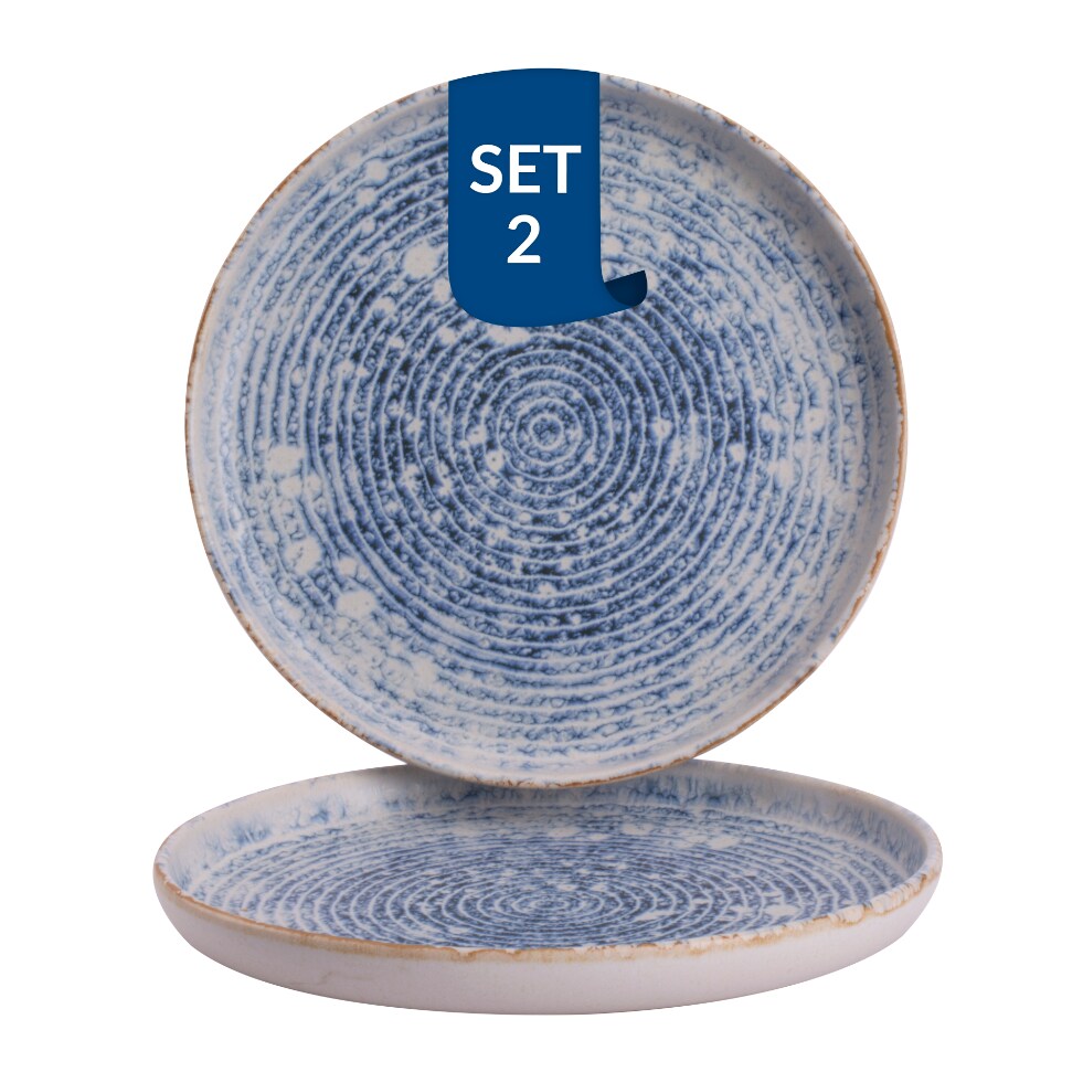 James Cooke Azure Vintage flache Teller 2er-Set Steingut Ø 22 cm blau weiß gestreift