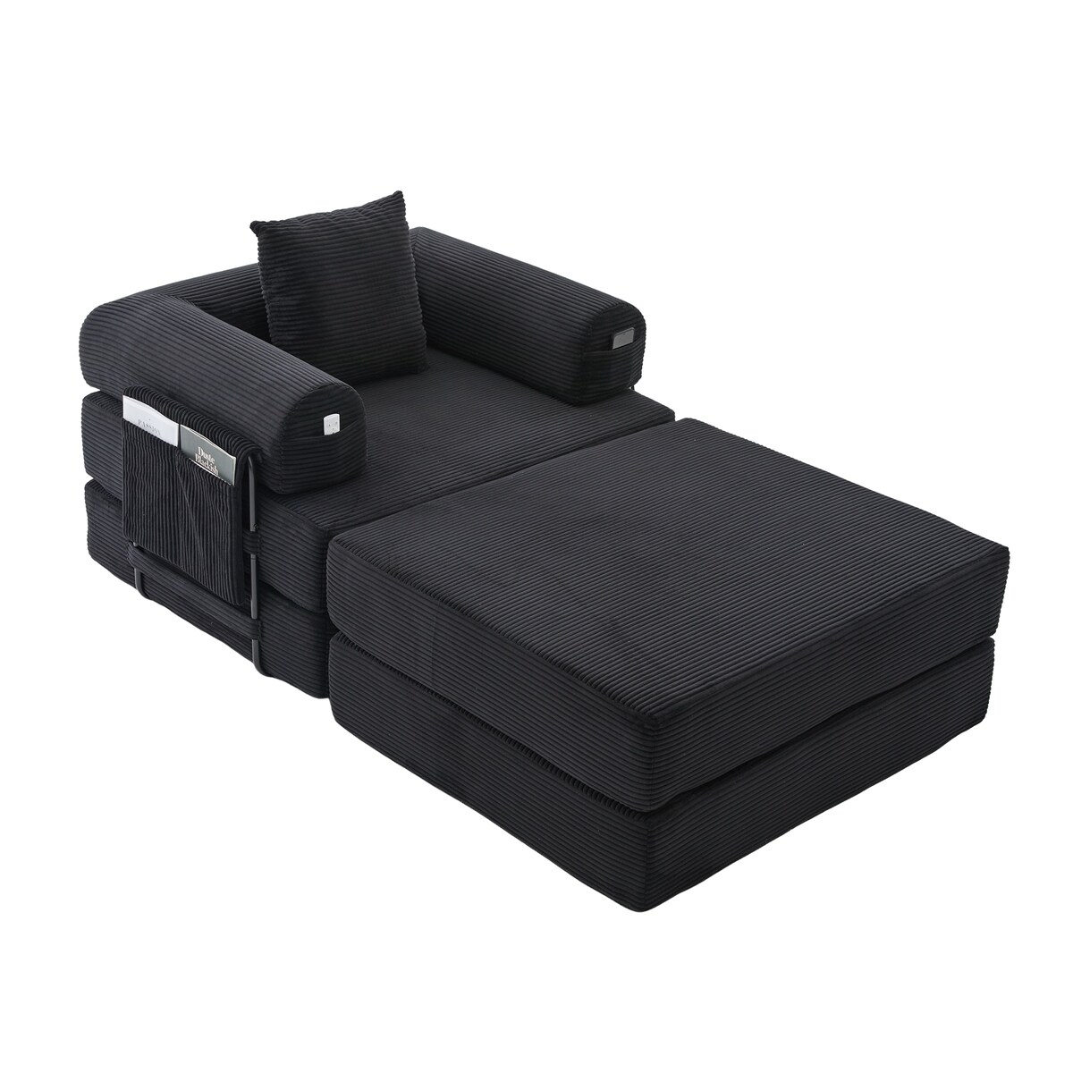 Merax Hocker & Cord-Poufs, frei kombinierbar, Funktionsausstattung – verwandelt Sessel in Schlafsessel, Schwarz