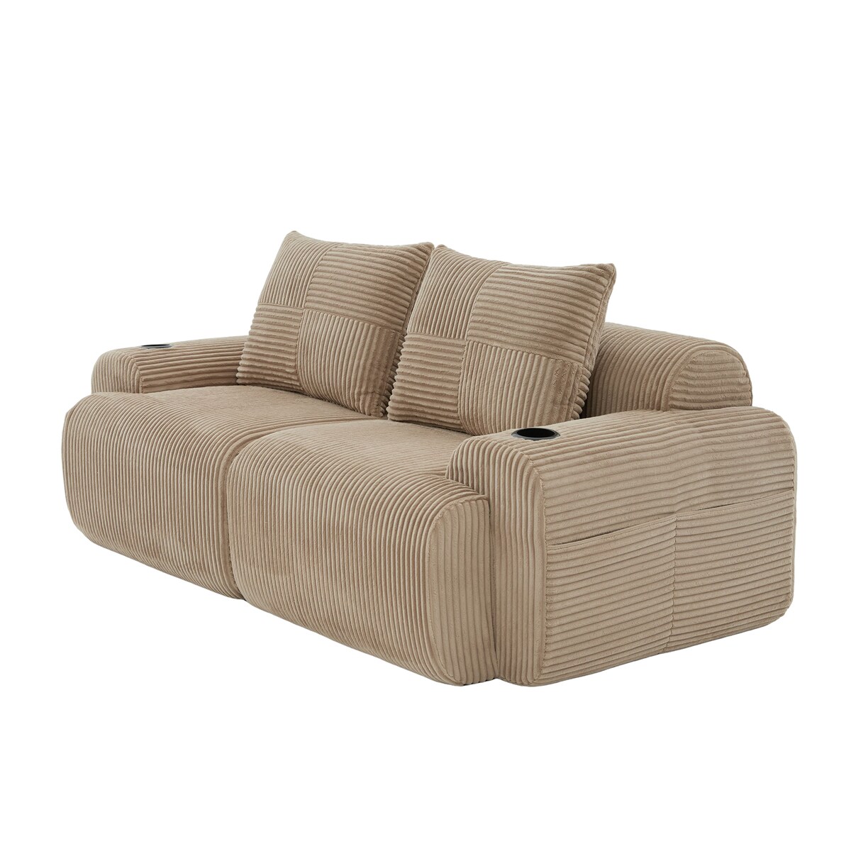Merax Modulares Cordsofa für 2 Personen, mit 2 Rückenkissen, inkl. Getränkehalter & Seitentasche, frei kombinierbar, Beige