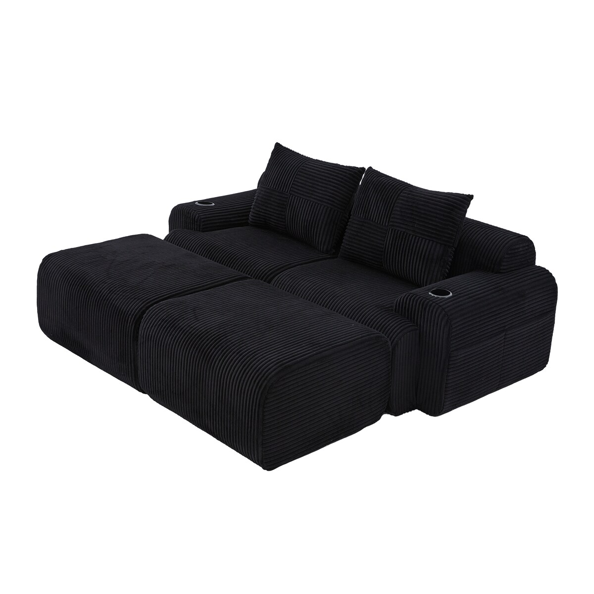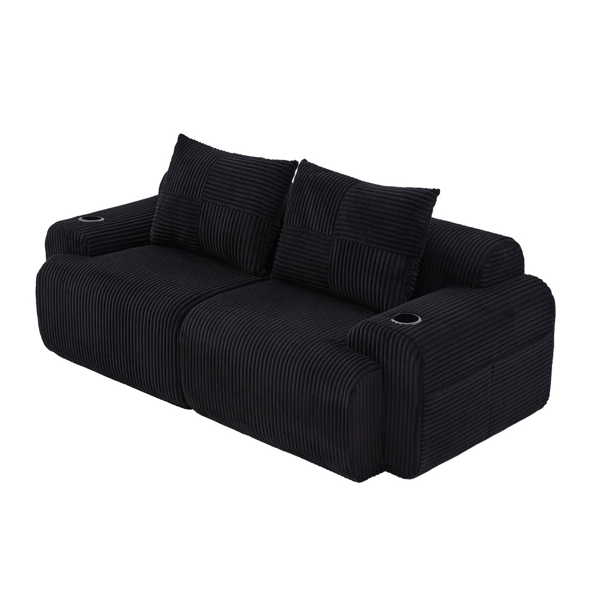 Merax Modulares Cordsofa für 2 Personen, mit 2 Rückenkissen, inkl. Getränkehalter & Seitentasche, frei kombinierbar, Schwarz