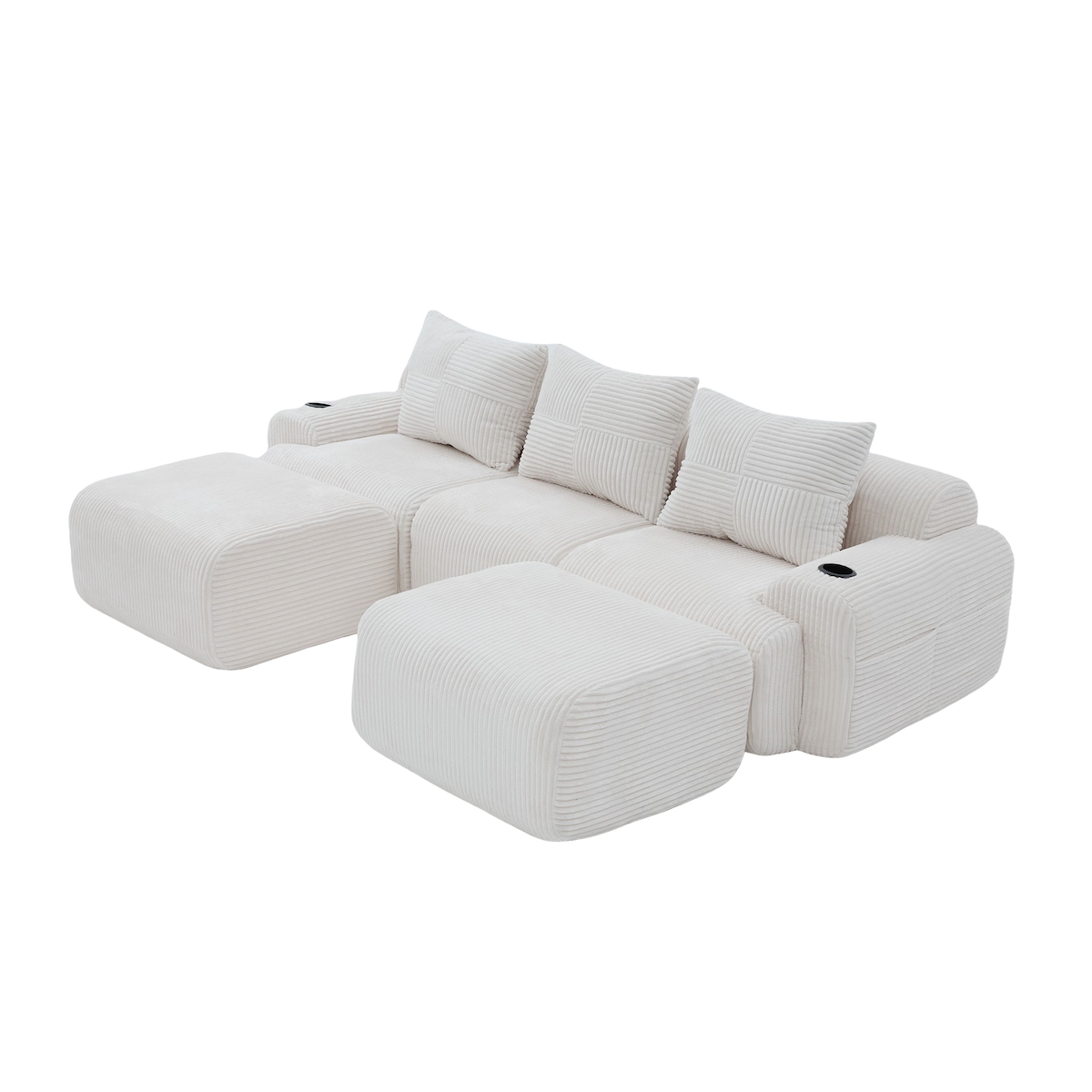 Merax Cordsofa für 3 Personen mit 2 Hockern, inklusive Getränkehalter und Seitentasche, frei kombinierbar, Beige