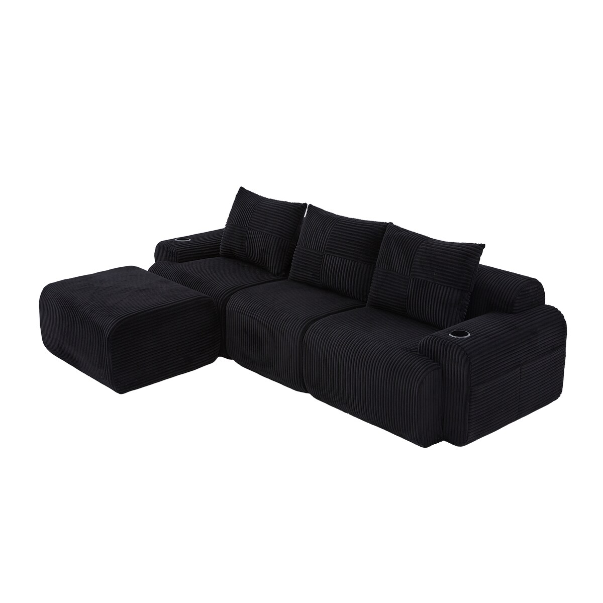 Merax Modulares Cordsofa für 3 Personen, 1 Hocker & 3 Rückenkissen, inkl. Getränkehalter & Seitentasche, frei kombinierbar, Schwarz
