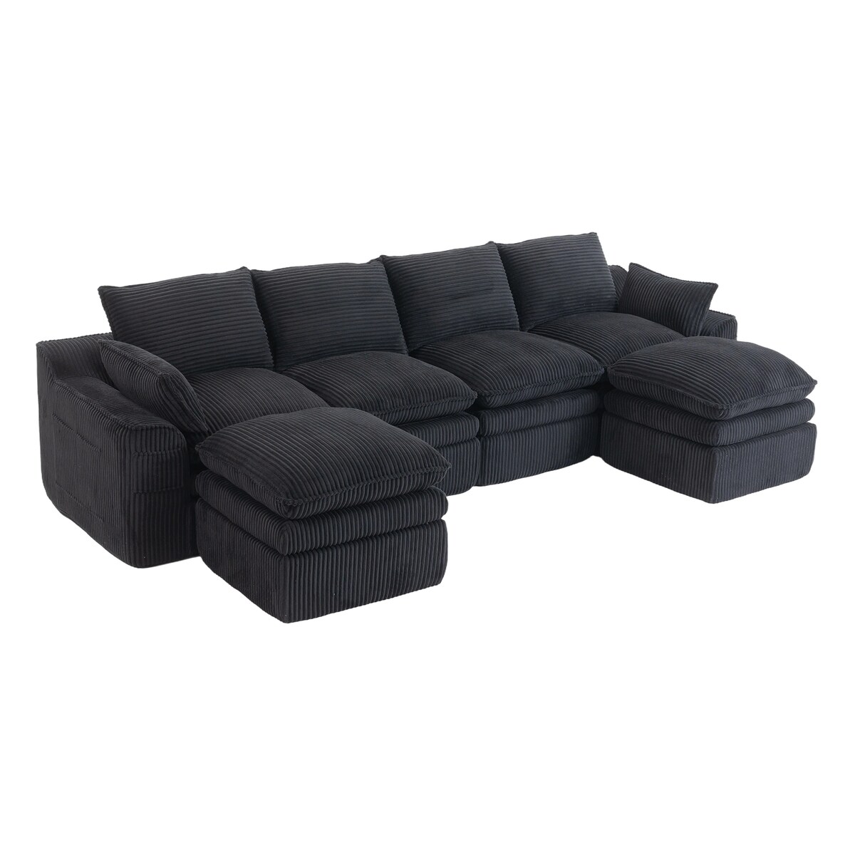 Merax Modulares 4-Sitzer Cordsofa, mit 2 Hocker, Kissen & Seitentaschen, 3‐lagiger Schaumstoff + Federkern, Schwarz