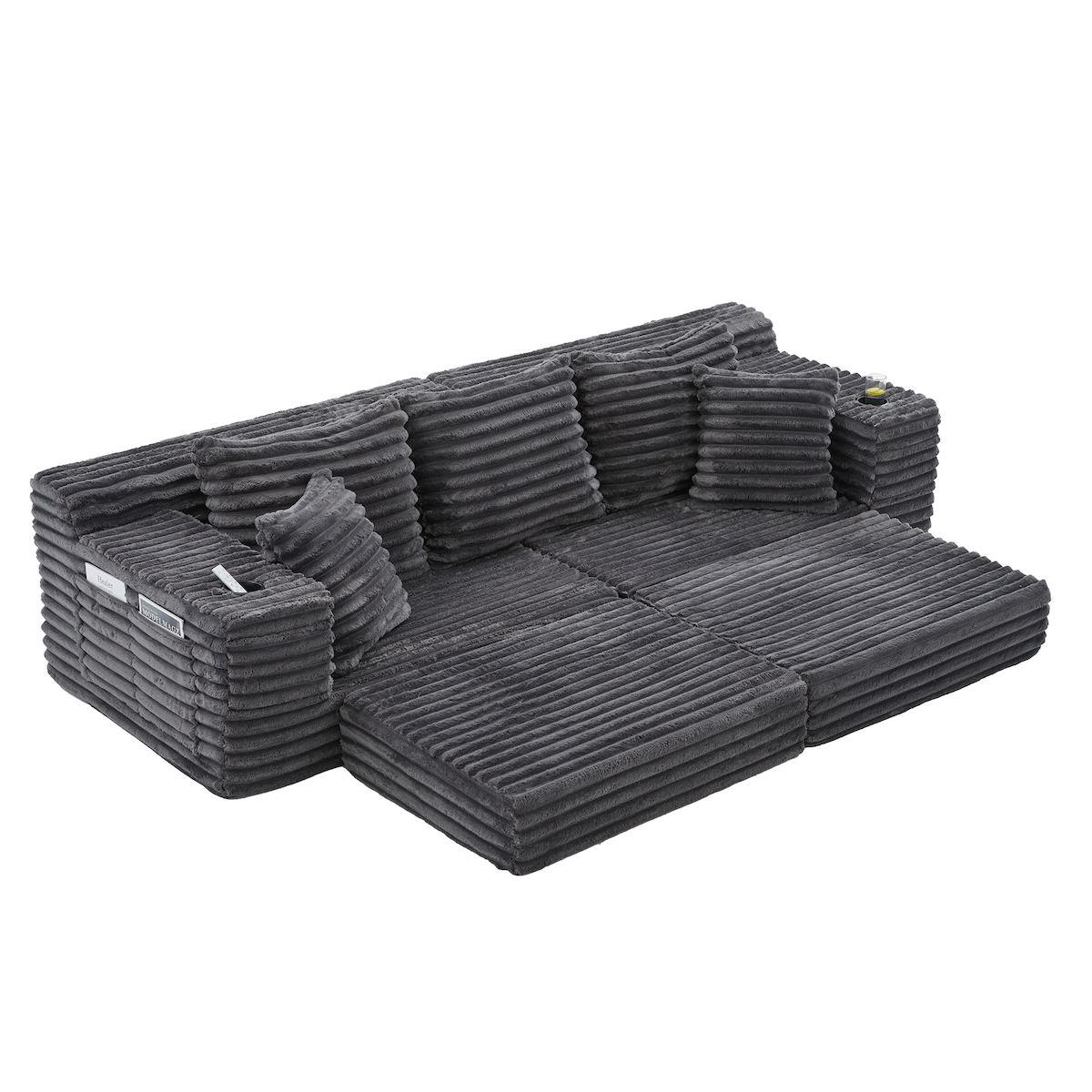 MODFU Dreisitzer Sofa mit USB und C-Anschluss Loungesofa mit einem Hocker breiter Sitzfläche Corduroy Modulares Sofa mit Seitentaschen für das Wo...