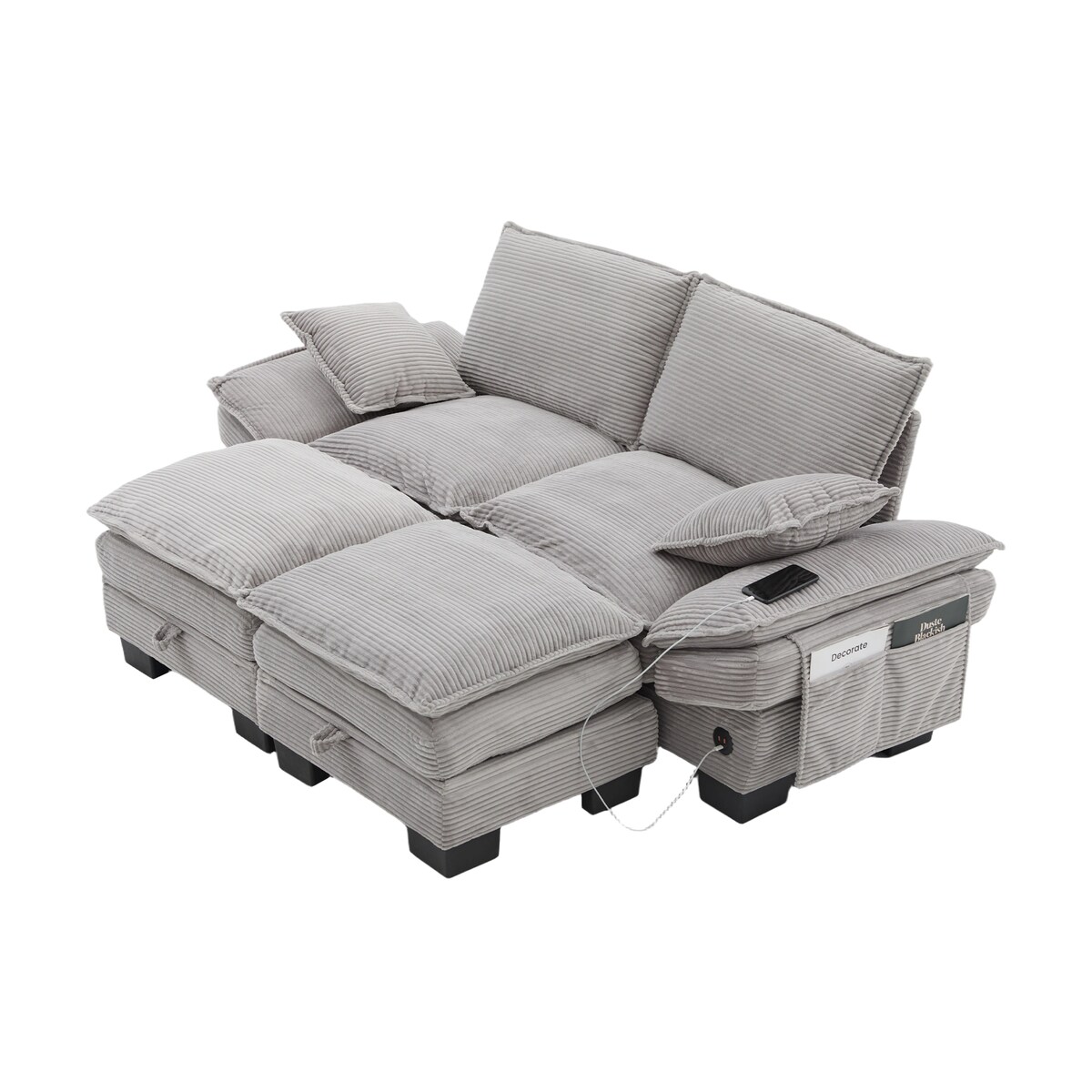 MODFU Zweisitzer Sofa mit USB und C-Anschluss Loungesofa mit zwei Hockern breiter Sitzfläche Corduroy Modulares Sofa mit Seitentaschen für das Wo...
