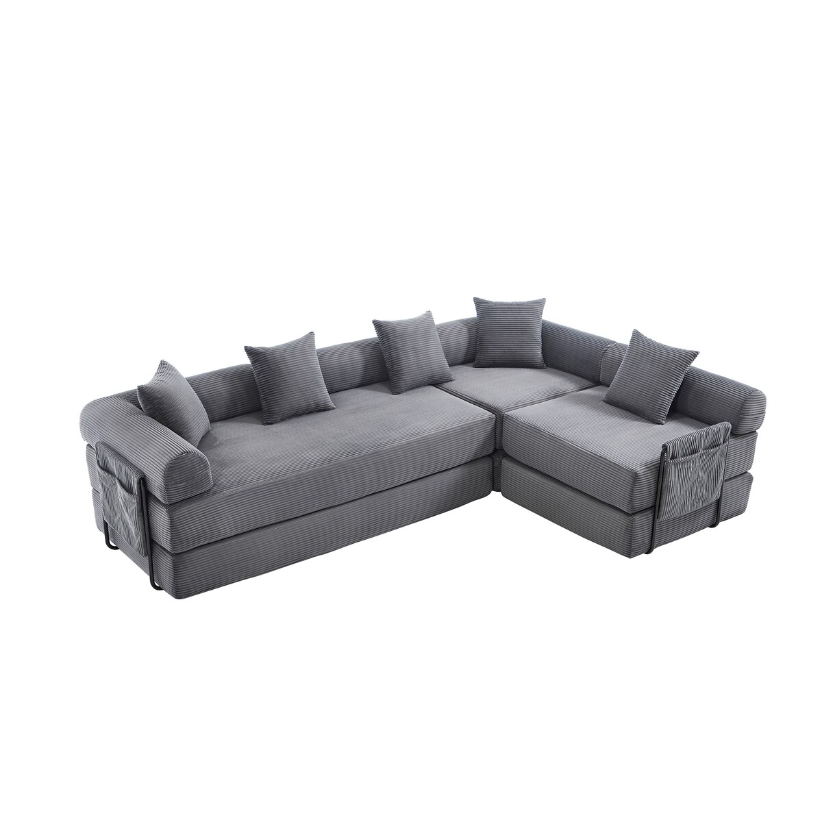 L-förmiges Ecksofa Modulares Sofa Ecksofa 3-4 Sitzer, mit 5 Kissen, seitliche Taschen & Getränkehalter, keine Montage erforderlich, Corduroy, sch...