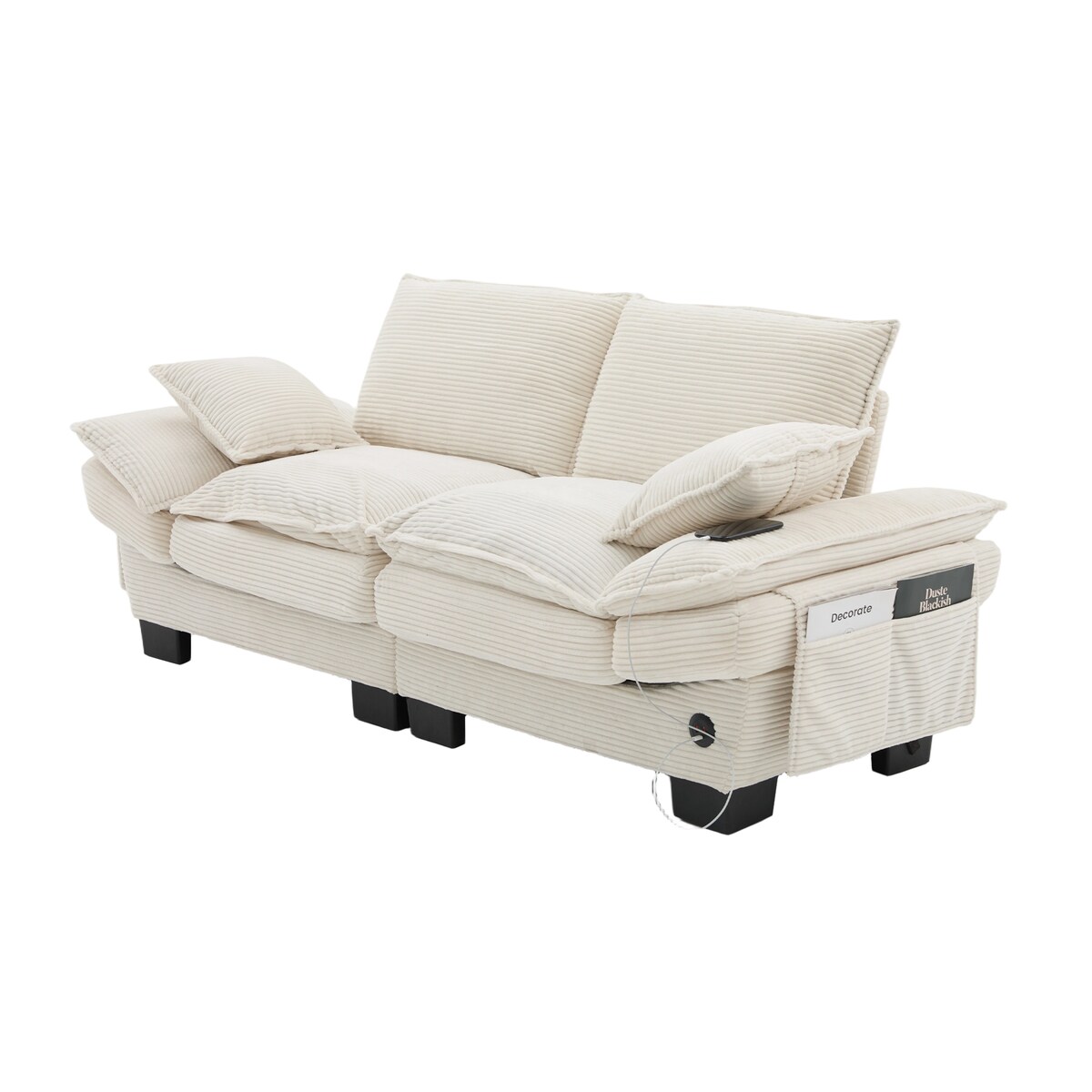 Merax 2-Sitzer-Sofa mit USB-C-Anschluss & Seitentaschen, Dicke Kissen, Corduroy, Beige