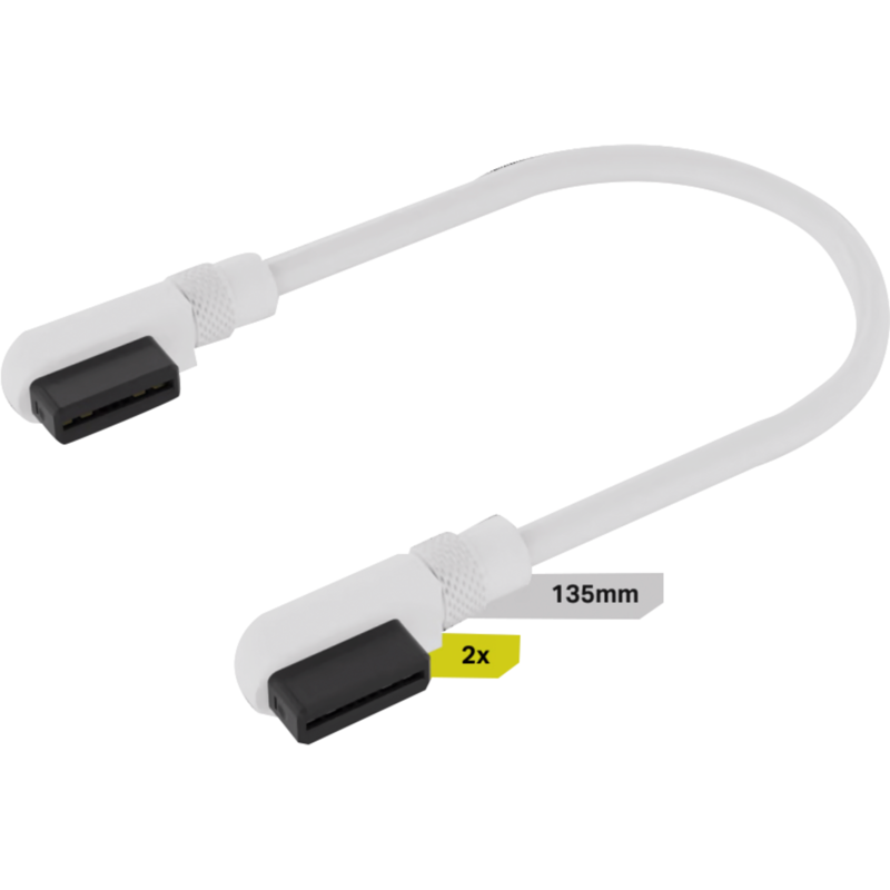 Corsair iCUE LINK Slim-Kabel, 135mm, 90° abgewinkelt, weiß, 2 Stück