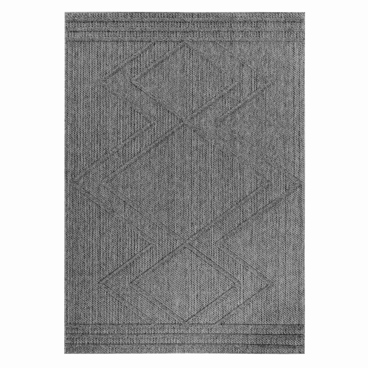 Teppich Outdoor Boho Wetterfest Waschbar Strapazierfähig Balkon Terrasse Küche OEKO-TEX Grau 200x290 cm – CORTINA von Kadima Design
