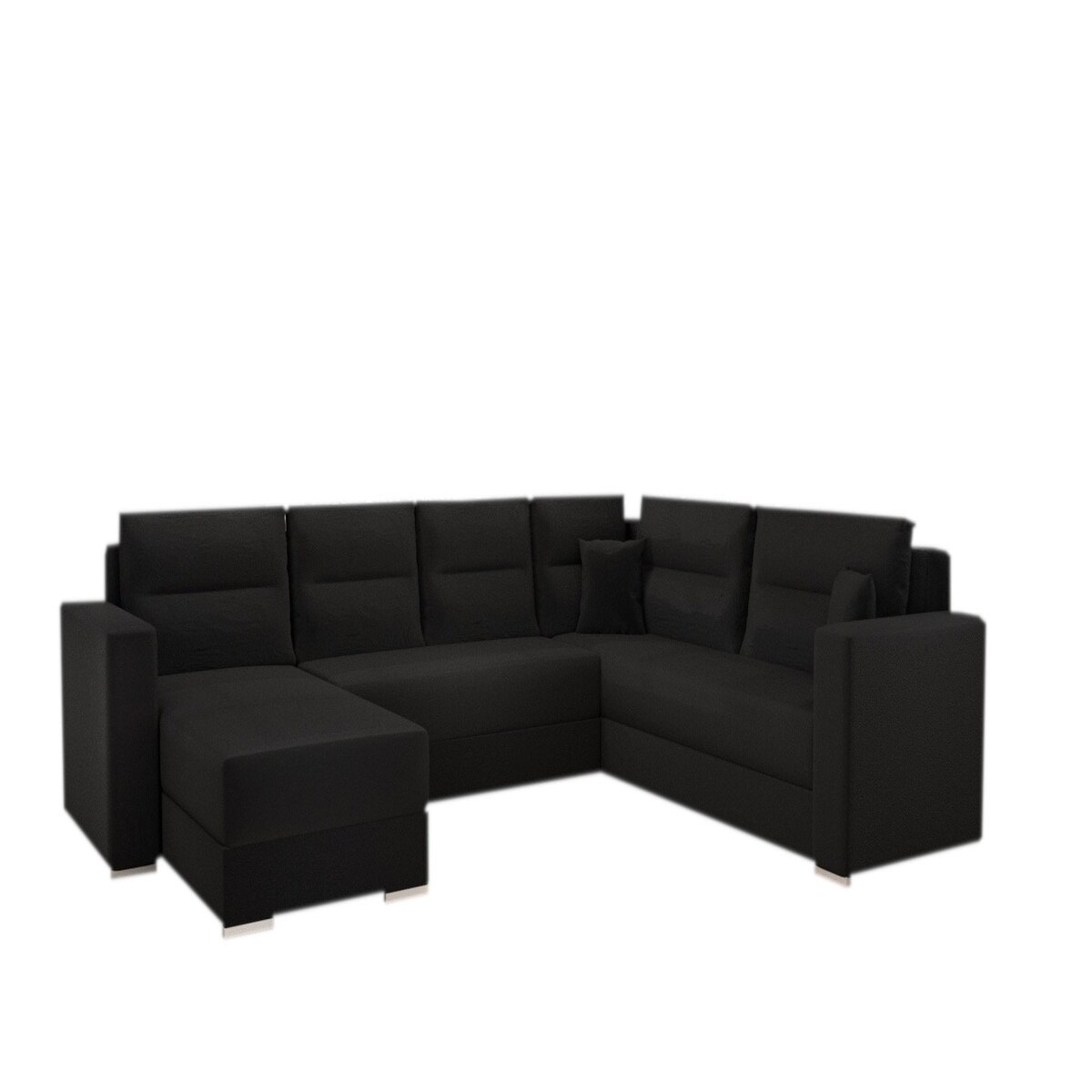 Ecksofa Comfort Deluxe U 360x185 cm Schwarz, Schlafsofa mit Bettkasten, Multifunktionale Couchgarnitur
