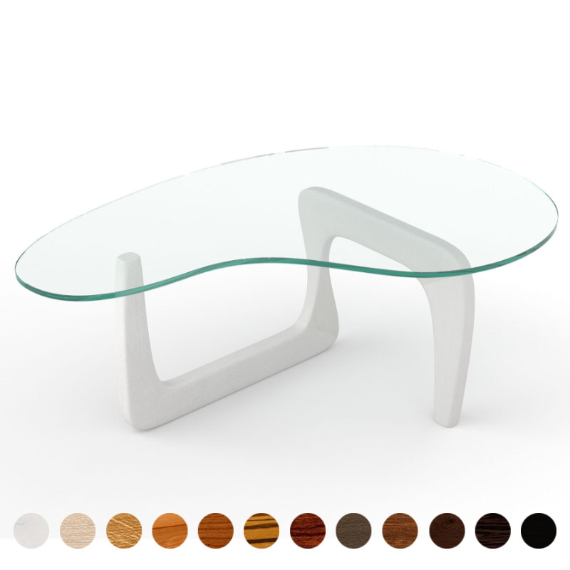 Luxus Couchtisch Niere mit Glasplatte und Massivholz Eiche-weiß Gestell Siena