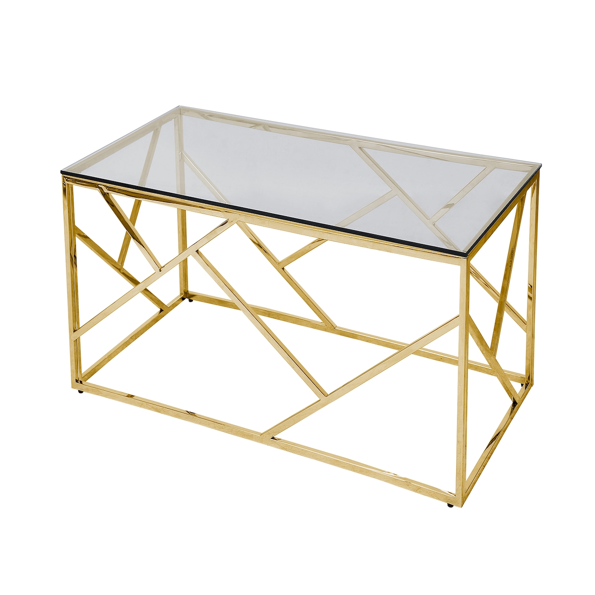 SalesFever Couchtisch 120 cm | Tischplatte 8 mm Sicherheitsglas | Gestell rostfreier Edelstahl | rechteckig | B120xT60xH45cm|goldfarben–grau