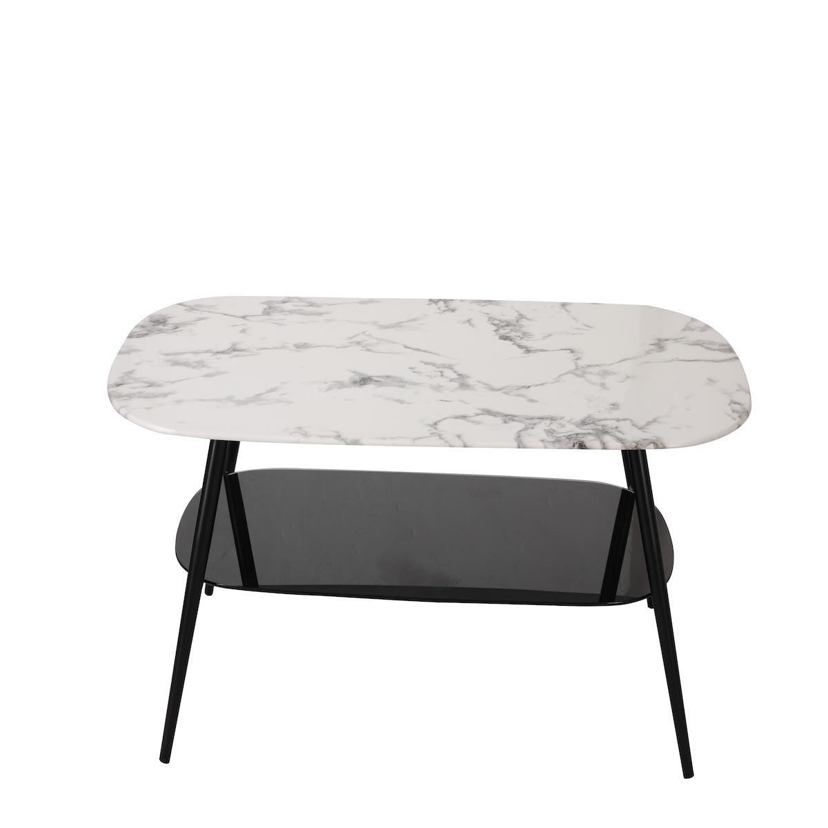 Möbilia Couchtisch rechteckig | 1 Ablageboden | Glasplatte Marmoroptik weiß | Metallgestell schwarz | B120xT60xH45 cm | 28020009 | Serie COUCHTISCH