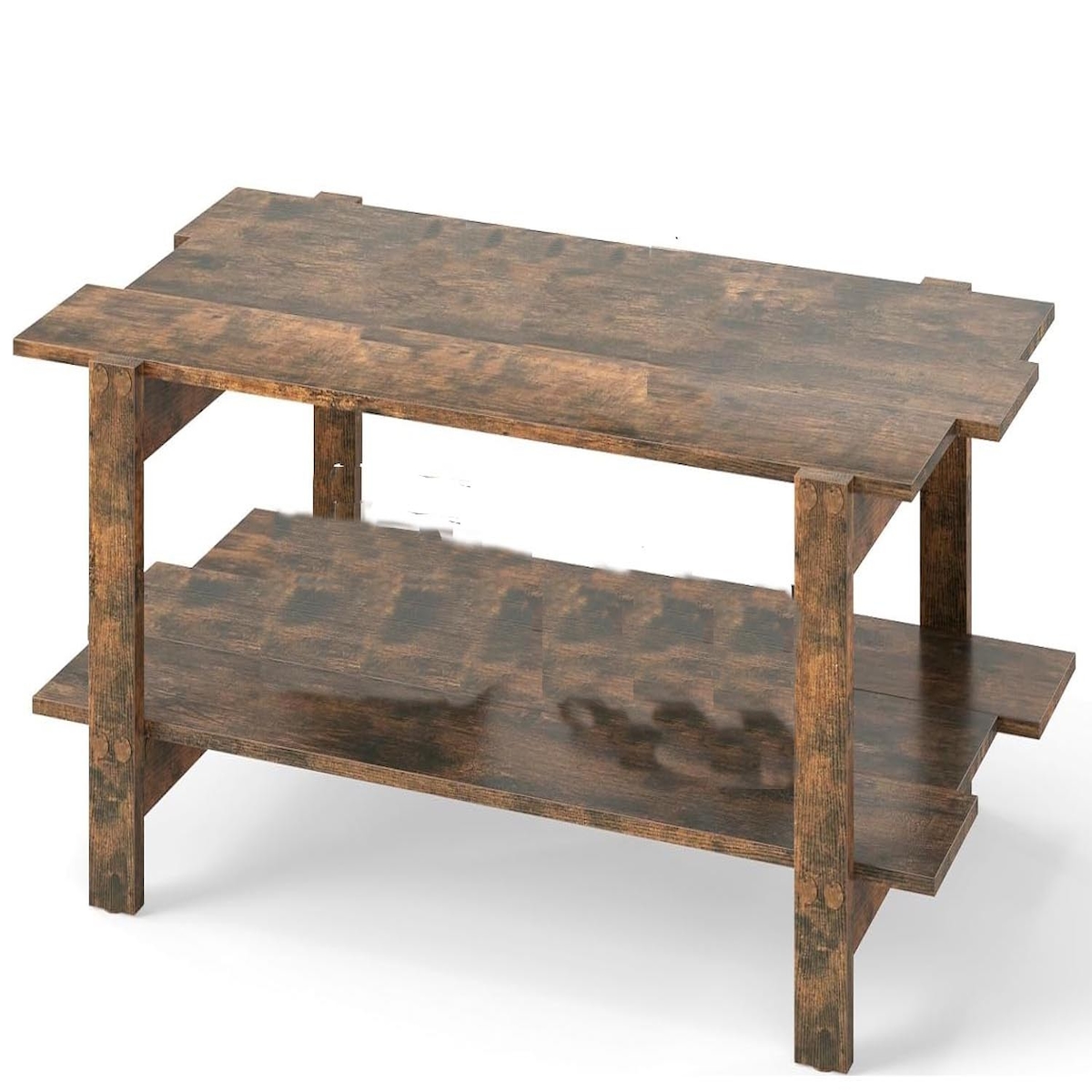 Couchtisch für Wohnzimmer - Rechteckig - 2 Ebenen mit Ablage - MDF-Holz - 120 x 60 x 45 cm - Rustikalbraun