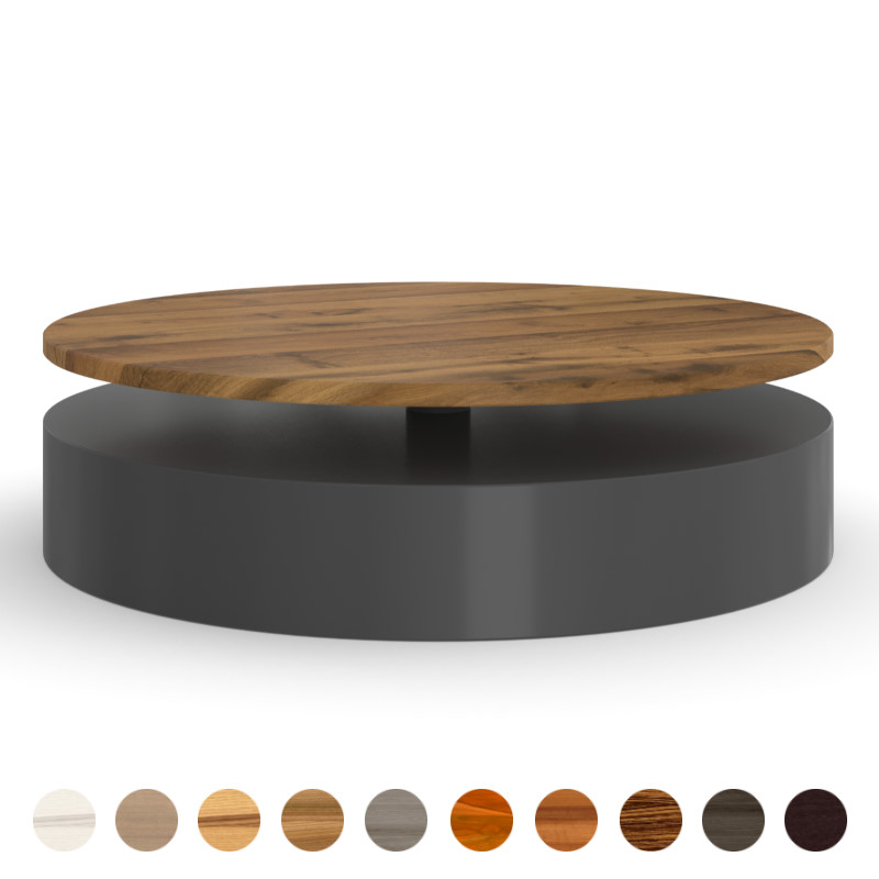 Industrial Design: Braun Rund Couchtisch mit Holzplatte für das Wohnzimmer