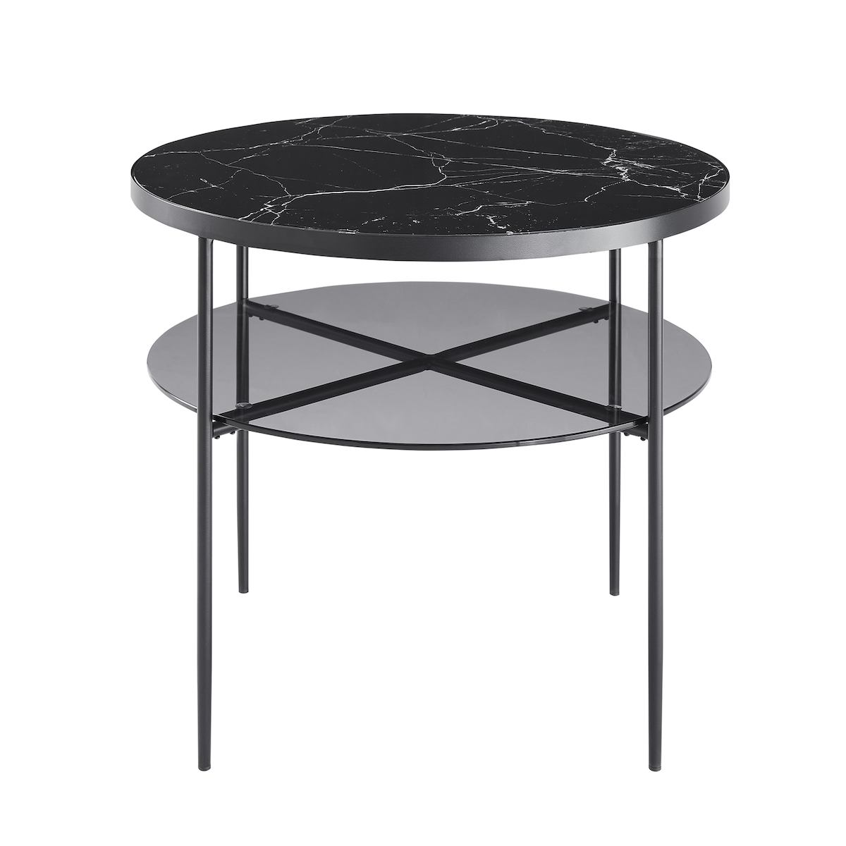 SalesFever Couchtisch Ø 81 cm | rund | 6 mm Glasplatte in Marmoroptik | Metallgestell | B 81 x T 81 x H 45 cm | Schwarz