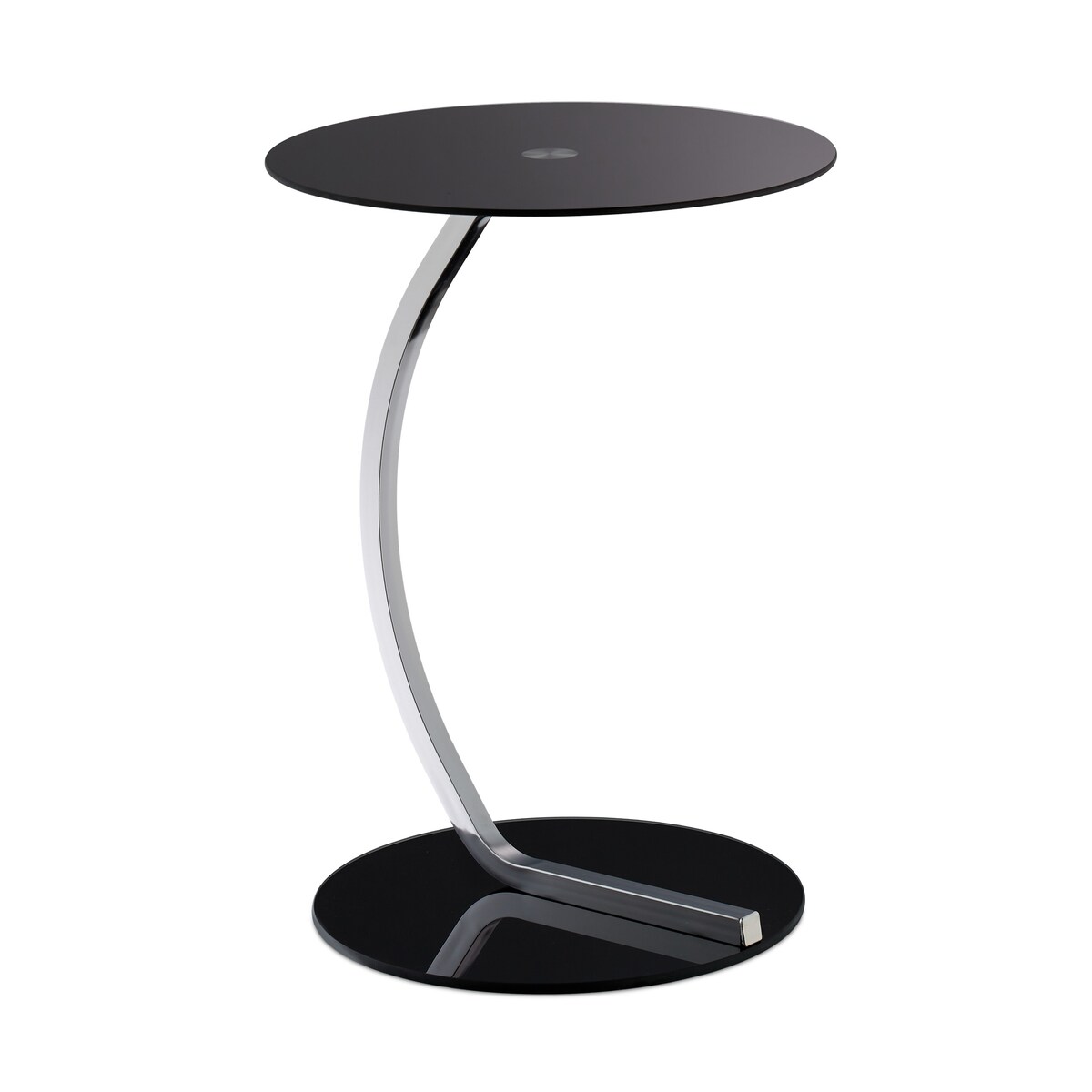 Relaxdays Beistelltisch, rund, für Wohnzimmer, modernes Design, Glas & Stahl, H x D: 55 x 40 cm, Couchtisch, schwarz