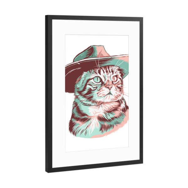 Poster mit Rahmen Schwarz (Metallic) "Cat cowboy pastel colors" artboxONE - Tiere,Lustig - Cat,Funny,Howdy,Meow,Meowdy,Country,Cowboy,Yeehaw