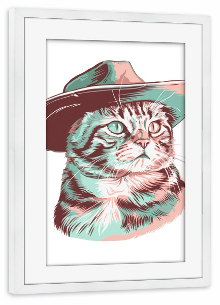Poster mit Rahmen weiß "Cat cowboy pastel colors" artboxONE - Tiere,Lustig - Cat,Funny,Howdy,Meow,Meowdy,Country,Cowboy,Yeehaw