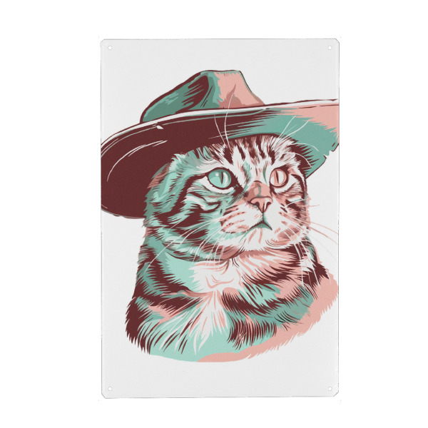 Holzbild "Cat cowboy pastel colors" artboxONE - Tiere,Lustig - Cat,Funny,Howdy,Meow,Meowdy,Country,Cowboy,Yeehaw