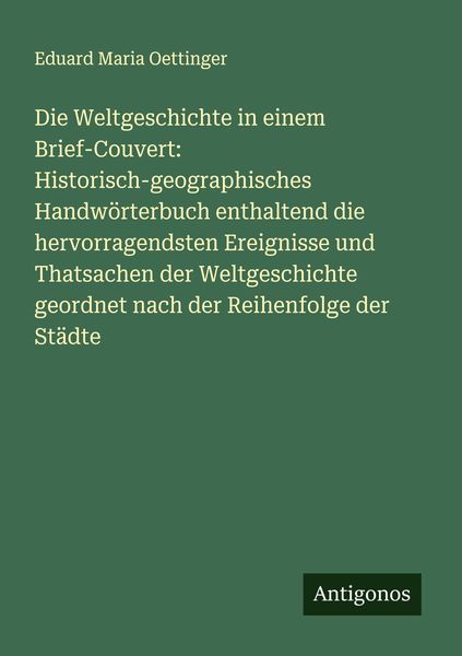 Die Weltgeschichte in einem Brief-Couvert: Historisch-geographisches Handwörterbuch enthaltend die hervorragendsten Ereignisse und Thatsachen der