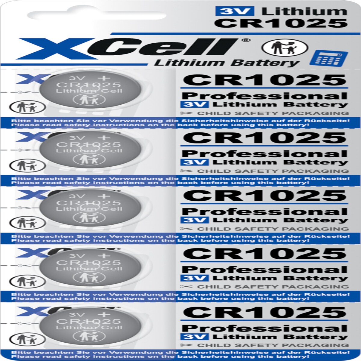 XCell Lithium-Knopfzelle CR1025 5er-Blister 3V/25mAh