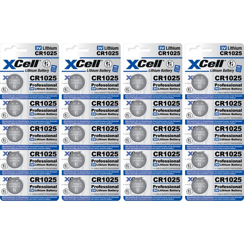 20x CR1025 XCell Lithium-Knopfzelle 3V/25mAh (4x 5er Pack)