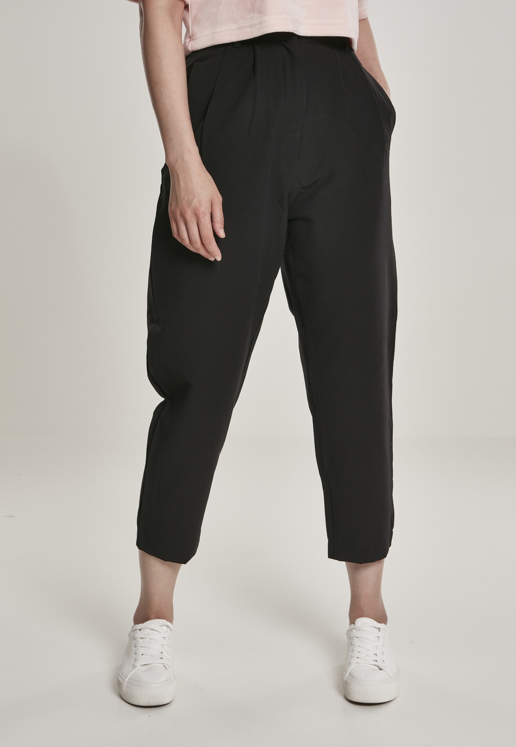 Urban Classics Damen Hose Ladies High Waist Cropped Pants Schwarz - Damen