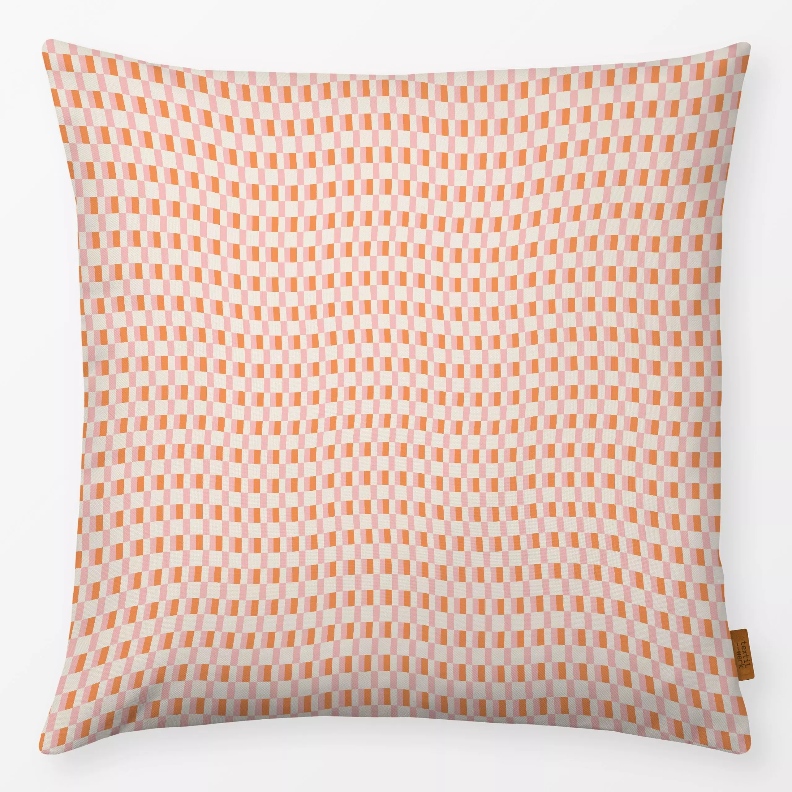 Kissen Lineas A Cuadros - Sommer, Symbole & Muster - von „Karen Menzenbach"; Muster, rosa, Retro, Garten, Orange, grafisch, ...