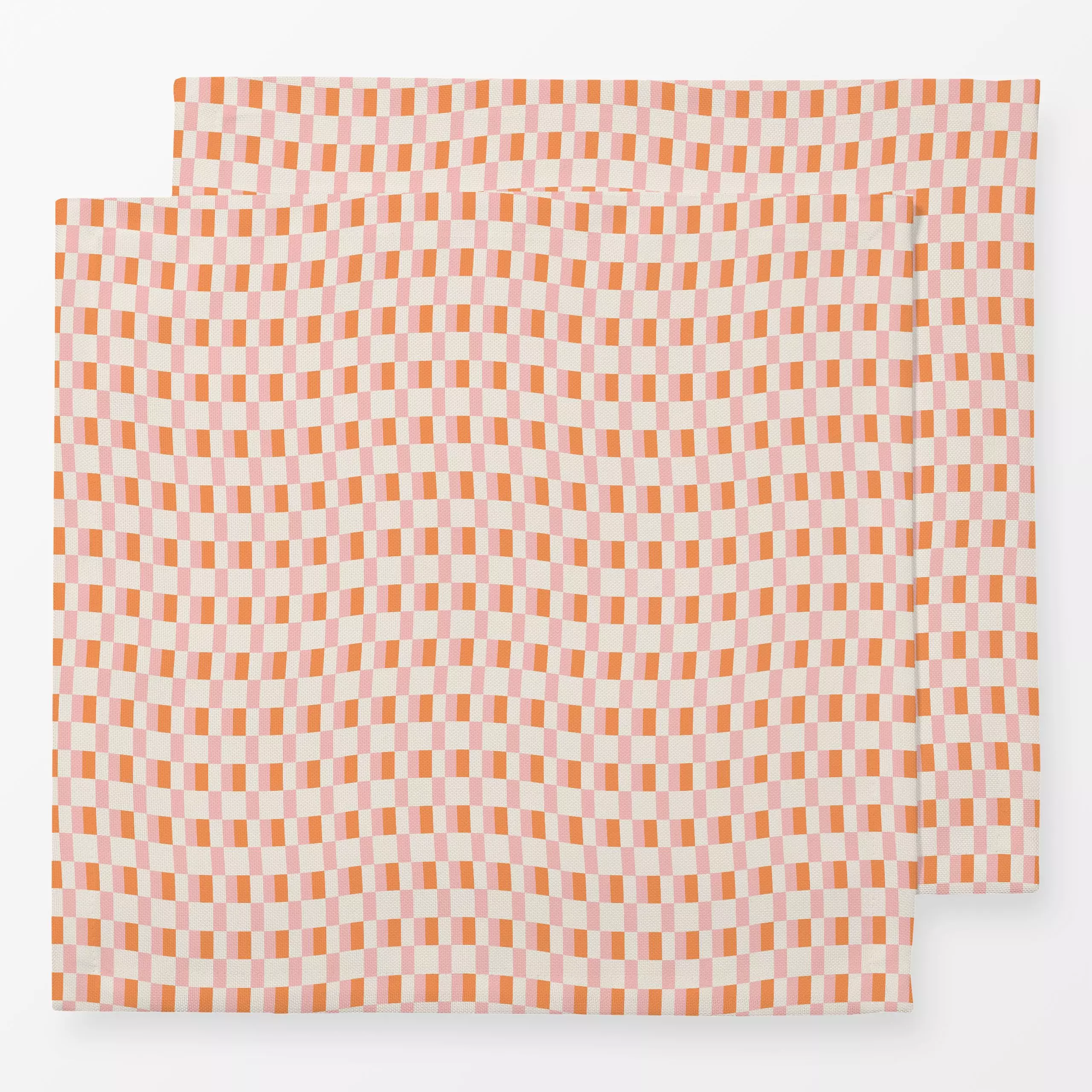 Servietten Lineas A Cuadros - Sommer, Symbole & Muster - von „Karen Menzenbach"; Muster, rosa, Retro, Garten, Orange, grafis...